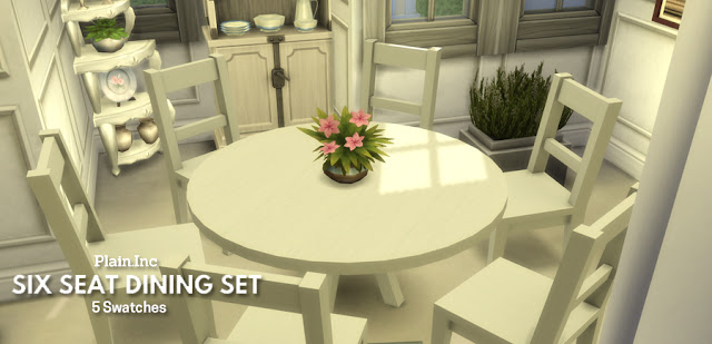 -Found in Table is located in Surfaces,Dining tables. Chairs are located in Comfort,Dining chairs.
